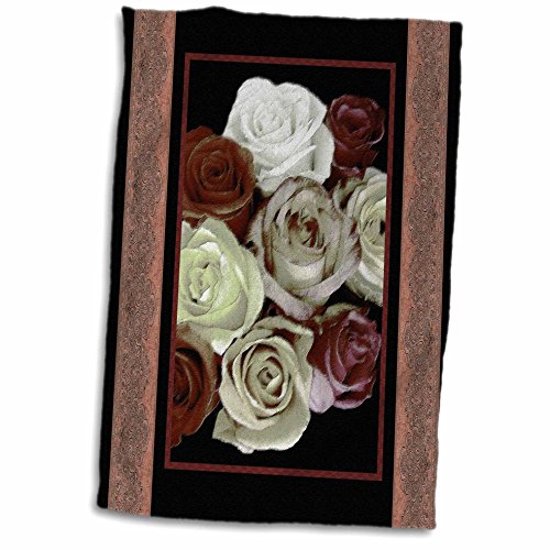 3D Rose Dreamy Hues of Chocolate Burgundy and Cream Roses with Bark Brown Damask Ribbon Trim twl_29804_1 Towel, 15" x 22"