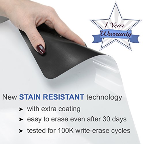 ✅ 1 YEAR WARRANTY - NEW PREMIUM MATERIAL - STAIN RESISTANT - NO WRINKLES - EASY TO ERASE - The white board has been successfully tested for 100.000 write-erase cycles. It is covered with special coating and can be easily erased even after 30 days. We offer a 1 year warranty on the board surface and we guarantee it will keep it's properties in time.