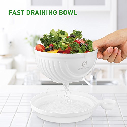 Kitchen Komforts Salad Cutter Bowl can keep all the ingredients together and has slots for a knife. Cross cut a variety of fruit and vegetables to satisfy your hunger at home in just 60 seconds.