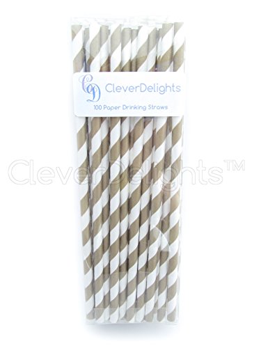 CleverDelights Paper Straws - Gold Stripe - Box of 100 - Eco-Friendly Biodegradable