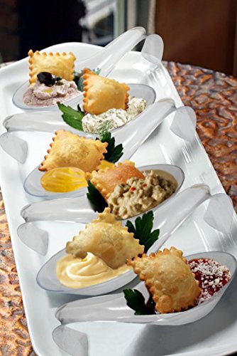 - PACK INCLUDES 100 ASIAN DESSERT / APPETIZER CRESCENT SPOONS. These elegant disposable spoons measure 5.25" long, 1.25" wide, and 1.50" high.