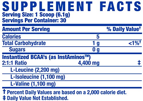 BCAA XS contains 4.4 grams of instantized BCAA's that support muscle protein synthesis, reduce muscle breakdown during exercise and improve exercise performance