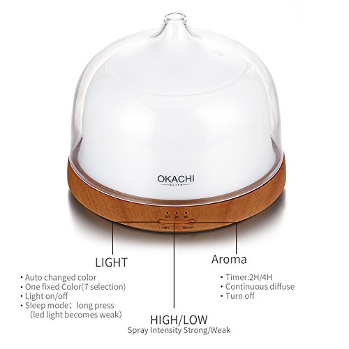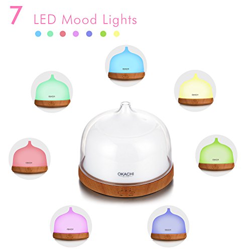 OKACHI GLIYA Aromatherapy Essential Oil Diffuser, Super Silent Cool Mist Humidifier with 7 Colored LED Mood Lights, Waterless Auto-off, Adjustable Timer...