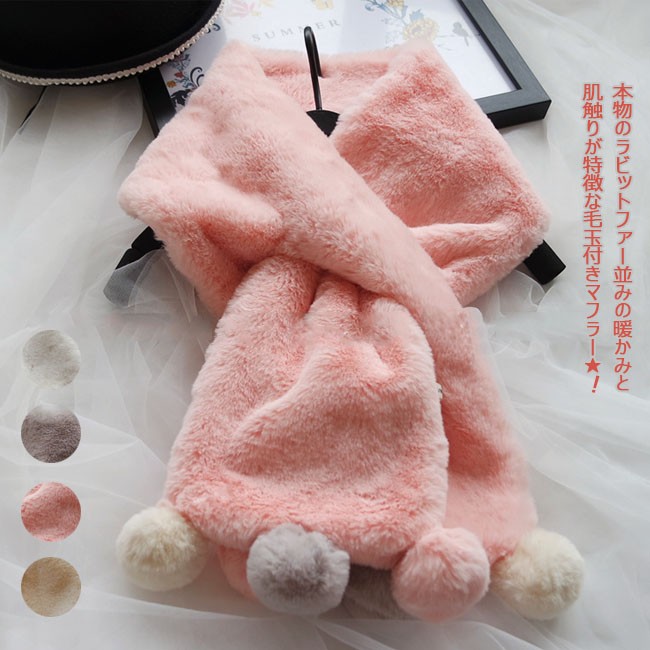 本物のラビットファー並みの暖かみと肌触りが特徴な毛玉付きマフラー★
