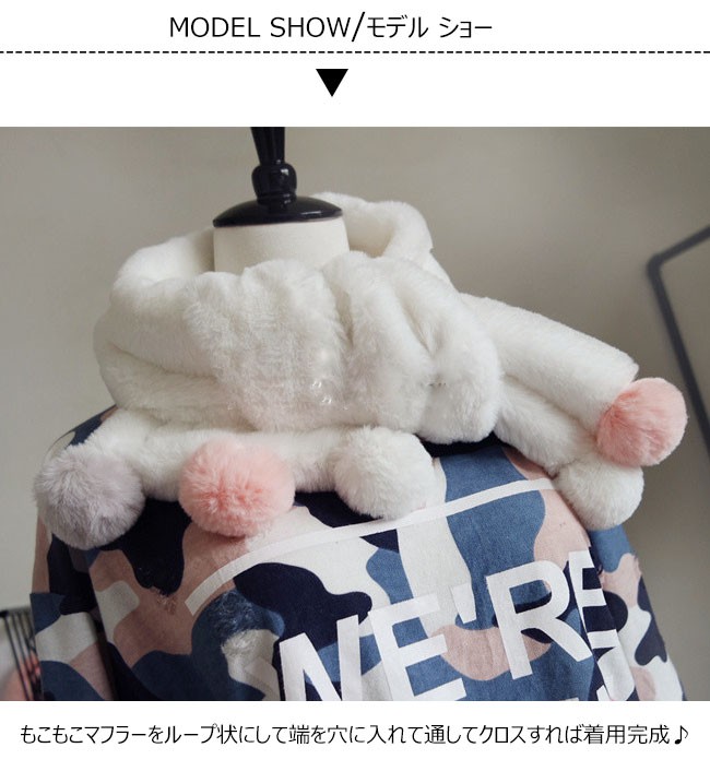 本物のラビットファー並みの暖かみと肌触りが特徴な毛玉付きマフラー★ | |