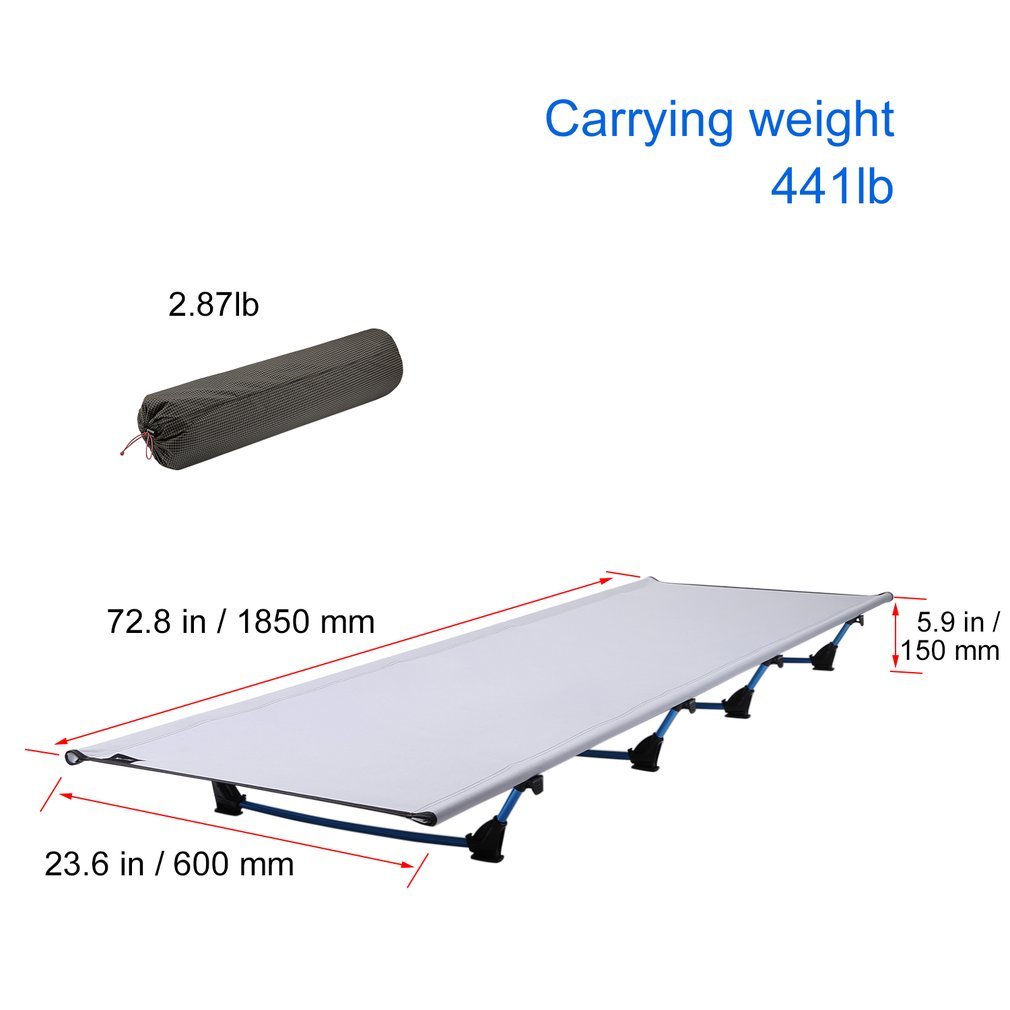 The load capacity of the 1st generation camp bed is 120 KG, and with heavy weight it will be easy to sleep on the ground.