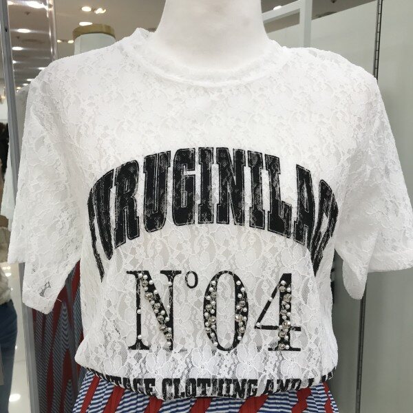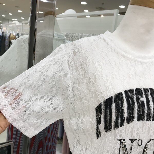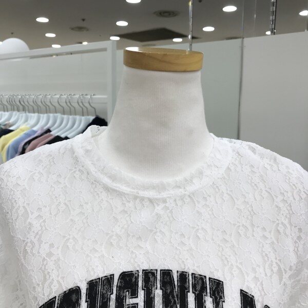 레터링 레이스 티셔츠 입니다전판 레이스처리로 고급스러우면서 여성스럽게 연출된답니다신축성이 있어 착용하시기도 좋답니다여름에 유용하게 입으실 수 있는 아이템!총장 62cm(FREE)