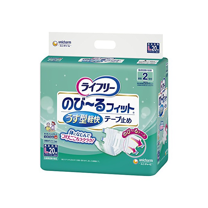 원본상품명: ライフリ? テ?プ止めおむつ のび~るフィットうす型?快テ?プ止め Lサイズ 20枚 2回吸? 【?て過ごすことが多い方】