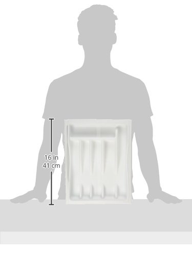 This white adjustable cutlery tray/drawer expands from either side to fit drawers 11.5'' To 19'' wide. Its roomy side compartments hold large gadgets neatly. It is also uniquely designed to stay in place with rubber grips on both sides and the bottom.