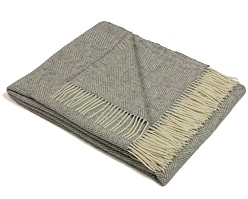Wool throw blanket woven to the highest standards in one of the oldest wool mills in the United Kingdom. This Variegated Herringbone design blanket is woven with extremely soft Merino Lambswool and is not at all scratchy. Shown here in Gray, it is also available in a number of other colors (shown above).