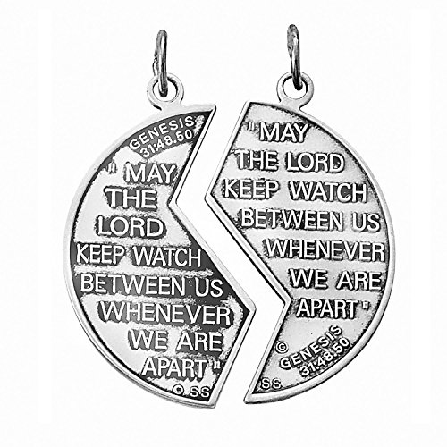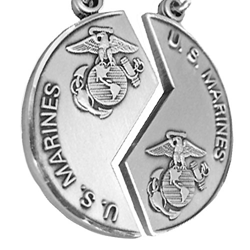 -. Title : Sterling Silver Two Piece Mizpah United States Marines Medals Pendant Set, 1 1/8 Inch
