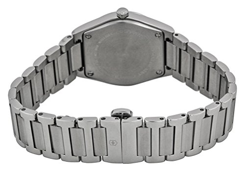 Featuring a stylish cream dial, this elegant ladies Victoria is the perfect accessory for any occasion. . . . . Cream dial with silver-tone hands and markers features an enamel pattern that radiates from the Victorinox logo position . . Stainless steel case and bracelet . . Anti-reflective sapphire glass crystal is virtually scratch-proof . . Luminous hands . . Caseback with screws . . Low battery indicator . . Stainless steel bracelet features a push-button deployment clasp . . Date window at the 6 o'clock position . . Water resistant to 100 meters (330 feet) . . Case width 28mm (approximately 1 1/8 inches) . .