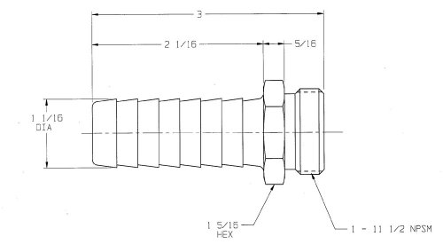 Dixon BLS818 Brass Hose Fitting, Long Shank Coupling, 1" NPSM Male x 1" Hose ID Barbed
