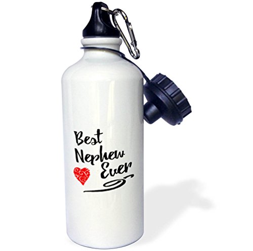-. Title : 3dRose Russ Billington Designs - Best Nephew Ever- Typographic design with red swirly heart - 21 oz Sports Water Bottle (wb_255104_1)