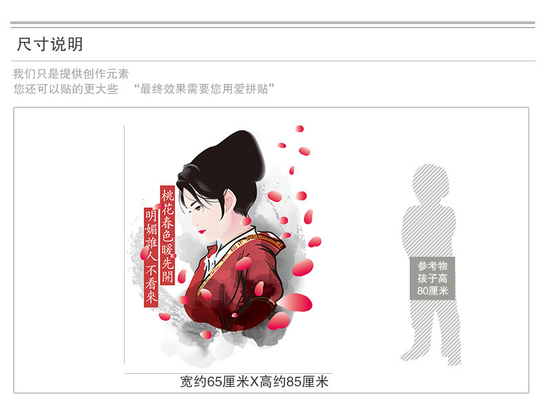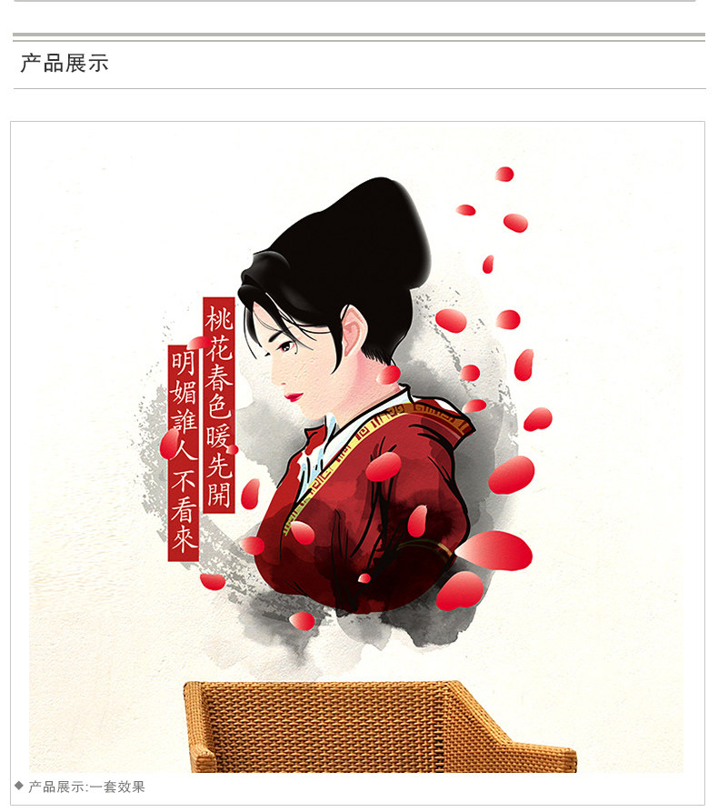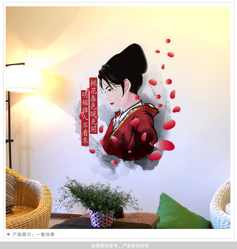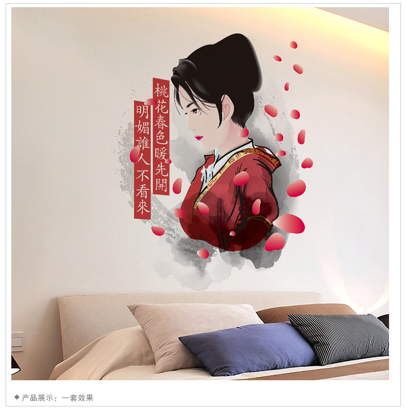 客厅书房背景墙上装饰中国风中式中国姑娘头像红衣女子墙贴纸自粘