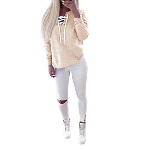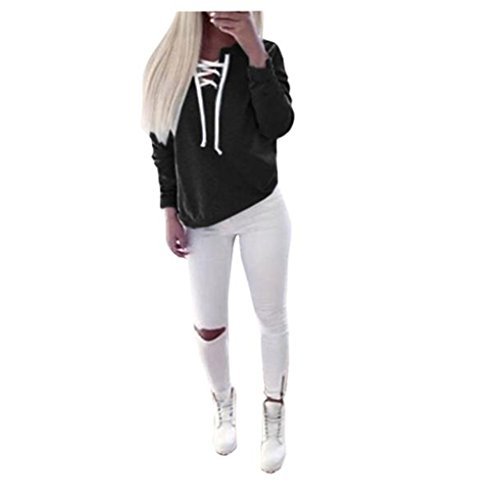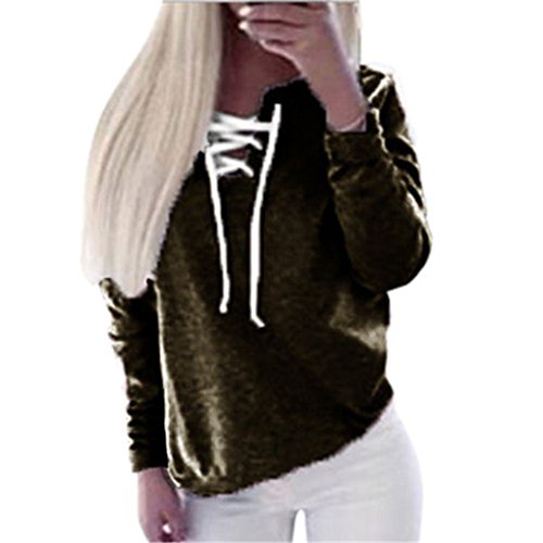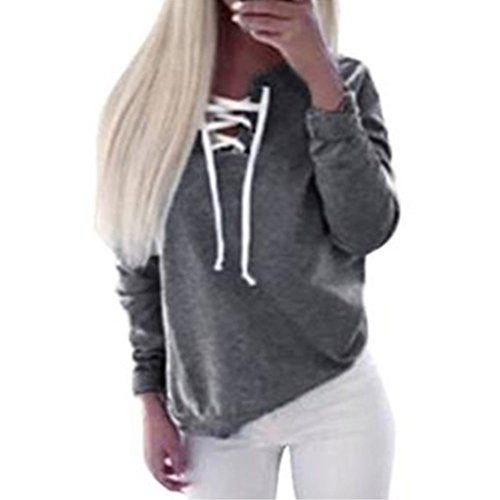 | (Haoricu)/Accessories/Luggage, Bags Travel/DIRECT FROM USA/Women T-Shirt,Haoricu Women Autumn Long Sleeve Pullover Lace-up Tops Blouse Casual Sports T-shirt |