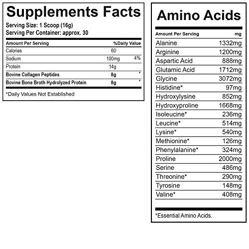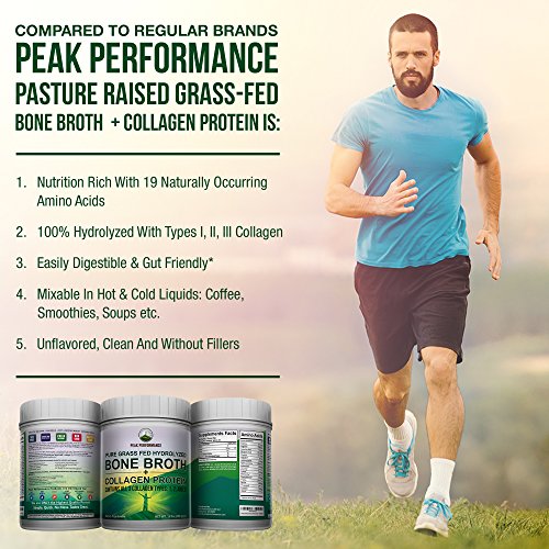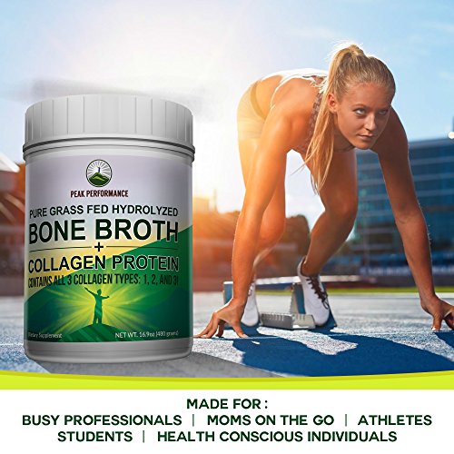 Studio : Peak Performance Life Publisher : Peak Performance Life Product Description 1-FOR-1 DONATION - FOR EVERY BOTTLE YOU PURCHASE - Peak Performance through our partnership with the Nonprofit Vitamin Angels - Will SUPPLY VITAMINS TO A CHILD AT RISK OF MALNUTRITION FOR 1 YEAR! So you can feel great knowing that not only are you buying the highest quality products on the market... YOU ARE also HELPING CHILDREN IN NEED. So THANK YOU for your contribution! WHY BONE BROTH COLLAGEN? Bone Broth, derived from REAL food sources, is considered to be one of the most ancient and remarkable nutritional substances and best source of natural collagen in the world. Everything that connects our body, keeping skin tone and joints strong, needs collagen. Collagen protein is different than whey and casein protein because of its high levels of amino acids. DON'T BE FOOLED: Not all collagen supplements are created equal, whether advertised as collagen peptides or collagen hydrolysate. In fact, most rely on just a single source of collagen. Until now. Introducing Peak Performance's ultimate blend of Bone Broth Collagen with types I III collagen for hair, skin, nails, muscles and bone support. PLUS type II collagen for joint and cartilage support, gut and healthy immune function. OUR GUARANTEE: Recent testing reveals popular collagen and bone broth products contain a number of potentially hazardous contaminants, including antibiotics, prescription drug metabolites, parabens, steroids and insecticides. With a trusted brand like Peak Performance, you are GUARANTEED the highest quality Bone Broth Collagen from pure, pasture-raised, grass-fed cows. Our Supplement contains no antibiotics, growth hormones or toxins and no artificial or refined sugars! It's also Paleo Friendly, Non-GMO, Gluten Free, Soy Free Dairy Free! 0