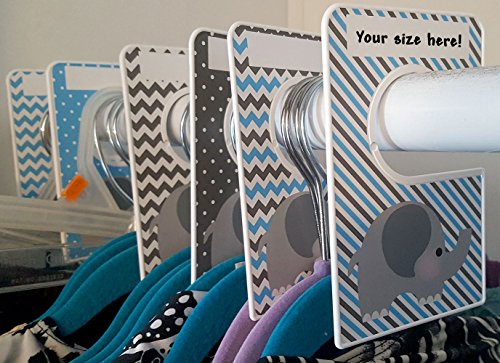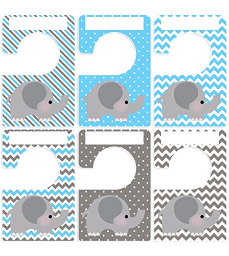 Closet Doodles 6 Clothing Dividers Blue Gray Elephant Plus 48 Sorting Labels
