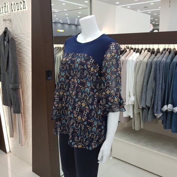 라운드 프린트 칠부 블라우스 입니다.