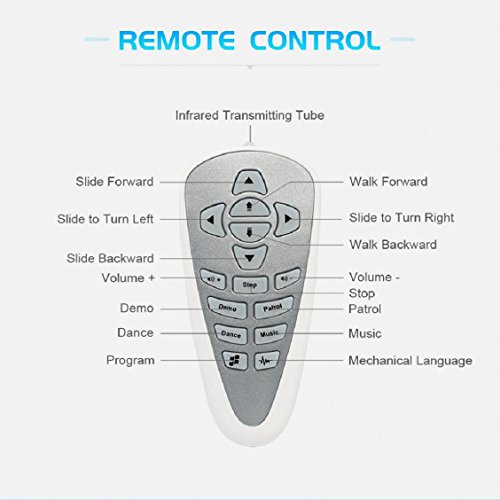 -. Feature : Package Contents: 1 × Robot; 1 × Remote Controller; 1 × Charger cable; 1 × Manual / Function: walk, slide, dance, singing, programmable,one key demonstration,gesture sensing,cool light / The entire machine body uses green ABS plastic material / A good companion for your kids / Size: 160 × 80 × 265mm