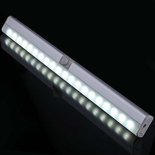 Closet Light, LOFTER Rechargeable 20-LED Wireless PIR Motion Activated Stick on Cupboard Light/ Kitchen Cabinet/ Wardrobe/ Hallway/ Light Bar with Adjustable Sensor and Auto On/Off Switch