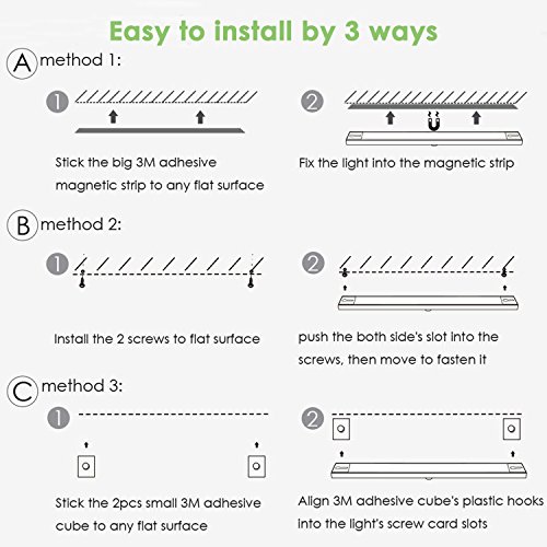 - 【3 INSTALLATION WAYS】: Our motion activated closet light equip 1pc big 3M adhesive magnetic strip, 2pcs small 3M adhesive cube and 2pcs screw, simple to install by these 3 ways and easy to remove for charging. The portable closet light allows you to change the location of it or switch between different locations. Ideal for your home’s bedroom, closet, cabinet, wardrobe, workshop, basement, garage, stair, garage etc.