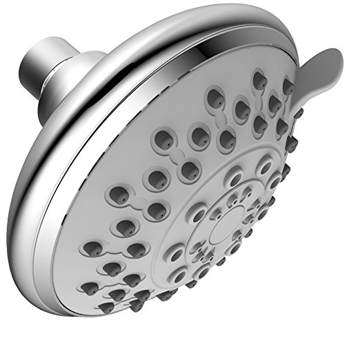 Xogolo 5-Inch SPA Shower Head High Pressure - 6 Fuctions including 5 Sprays + Water-Saving,Polished Chrome Finished, 2.5GPM, Coming with Self-Cleaning Silicon Nozzles, Adjustable Brass Ball Joint
