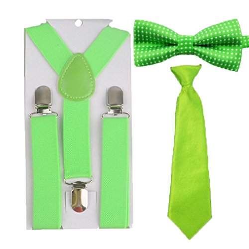 Binding : Apparel Product Description 100% New and High Quality! Material:Polyester Package include:Suspenders Bowtie TieSuitable for height: 100cm-130cm Available Size: Suspenders:Length about 65cmWide about 2.5cm Bowtie:Length about 10cmWide about 6cmTie:Length about 28cmWide about 6.5cm Main Color: 01# Greenplease be aware the color appearance can be vary due to different screen£¬display resolution and lights conditions. 0