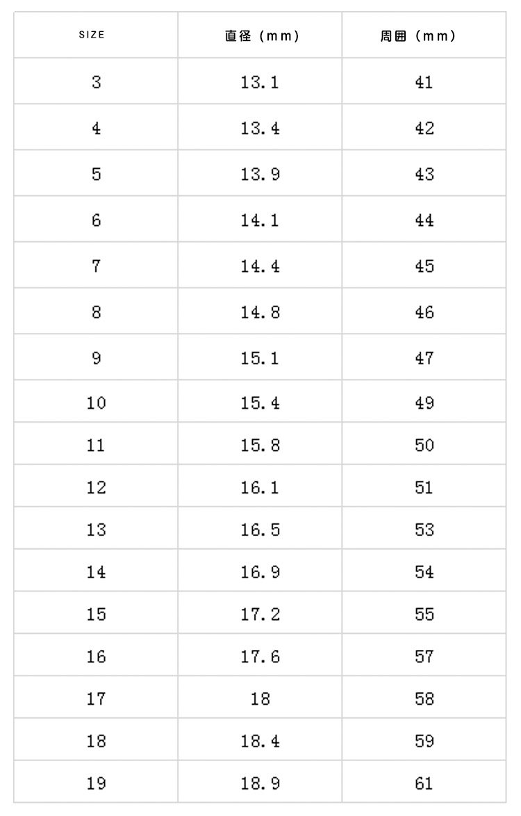 | サイズ | 3 4 5 6 7 8 9 10 11 12 13 14 15 16 17 18 19 |