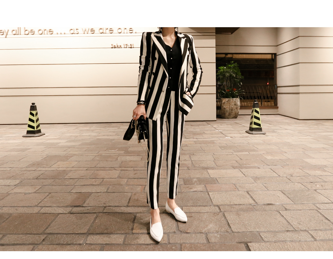 ホワイトとブラックのストライプ・パターンでポイントを与え、