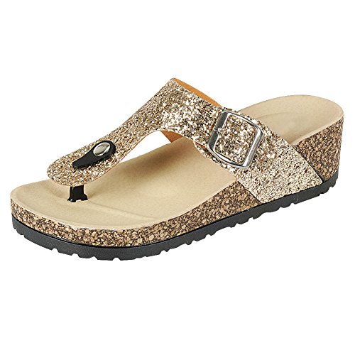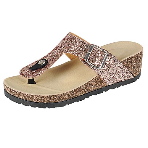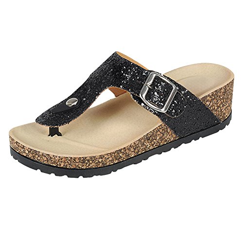 Trends SNJ Women's Glitter Solid Thong Strap w/Buckle Cork Sole Slide Wedge Sandal