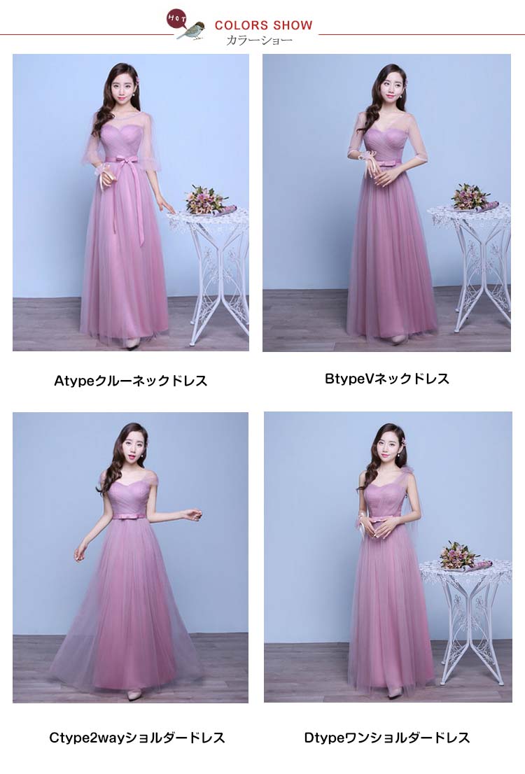 | 色 | Atypeクルーネックドレス BtypeVネックドレス Ctype2wayショルダードレス Dtypeワンショルダードレス |