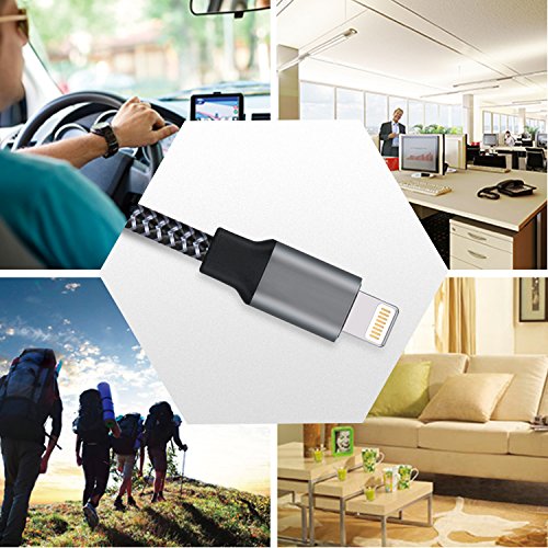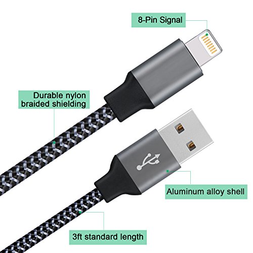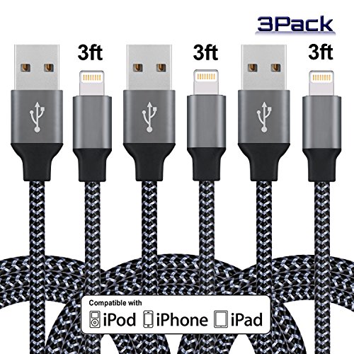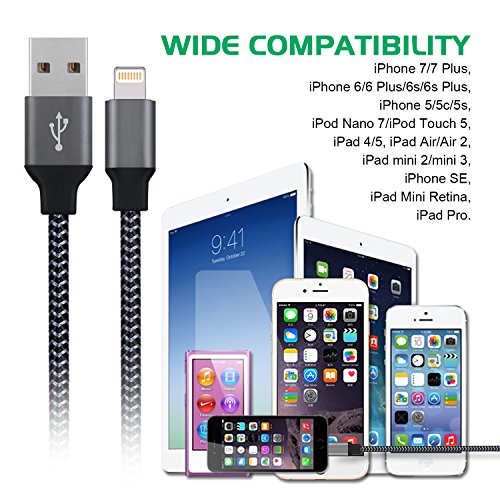 EverDigi Lightning Cable 3Pack 3FT 8Pin iPhone Charger, Premium Nylon Braided USB Charging Cord Compatible with iPhone 7 7 Plus 6 6s 6 plus 6s plus 5 5s 5c se ,iPad, iPod & More (Carbon Black)