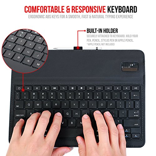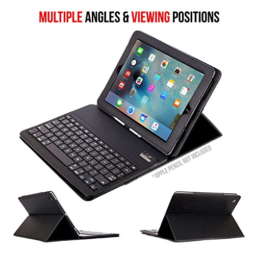 -. Feature : EXCEPTIONAL QUALITY: Premium synthetic (vegan) leather provides maximum protection to protect your iPad Pro from abrasions, scratches, splashes, stains and impact. The sleek design and smooth, high quality leather is an attractive complement for your new iPad Pro. The folio leather case has a snug and secure fit preventing your iPad Pro from falling out of the case. / INTUITIVE FUNCTIONALITY: The wireless Bluetooth keyboard quickly pairs with the new iPad Pro. The smart cover automatically shuts off when not in use. State-of-the-art ABS chiclet keys create a comfortable, easy and smooth typing experience. Higher quality than silicone keys, ABS keys provide a more natural feel and faster response time. / DETACHABLE KEYBOARD: Removable, magnetic keyboard allows you to move and transport the keyboard at ease. Whether you're typing on your couch, desk or bed, you have the comfort of typing anywhere you go. The keyboard re-attaches to the case and stays in place with magnetic plates built into the case. The case is designed for easy access to all ports and switches. / RELIABLE KEYBOARD FEATURES: Bluetooth 4.0 has a signal range up to 30 feet, 120 hours of working time, 800 hours of standby time and only takes 1-2 hours to fully charge. The keyboard can also be used with other Bluetooth-enabled devices such as the iPhone, Android tablets, other iPads and smartphones. Keyboard has all necessary functions including home key, dimming, brightening, search, playback controls, volume controls, similar to the Apple keyboard. / 100% CUSTOMER SATISFACTION GUARANTEED: Comes with an exclusive 1-year Alpatronix limited warranty (when purchased from authorized sellers) and 30-day money back guaranteed. Purchase with confidence! Don't like it? Simply return it.