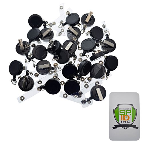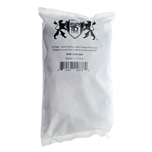 25 Pack - Bulk Premium Black Badge Reels with Alligator Swivel Clip on Back by Specialist ID