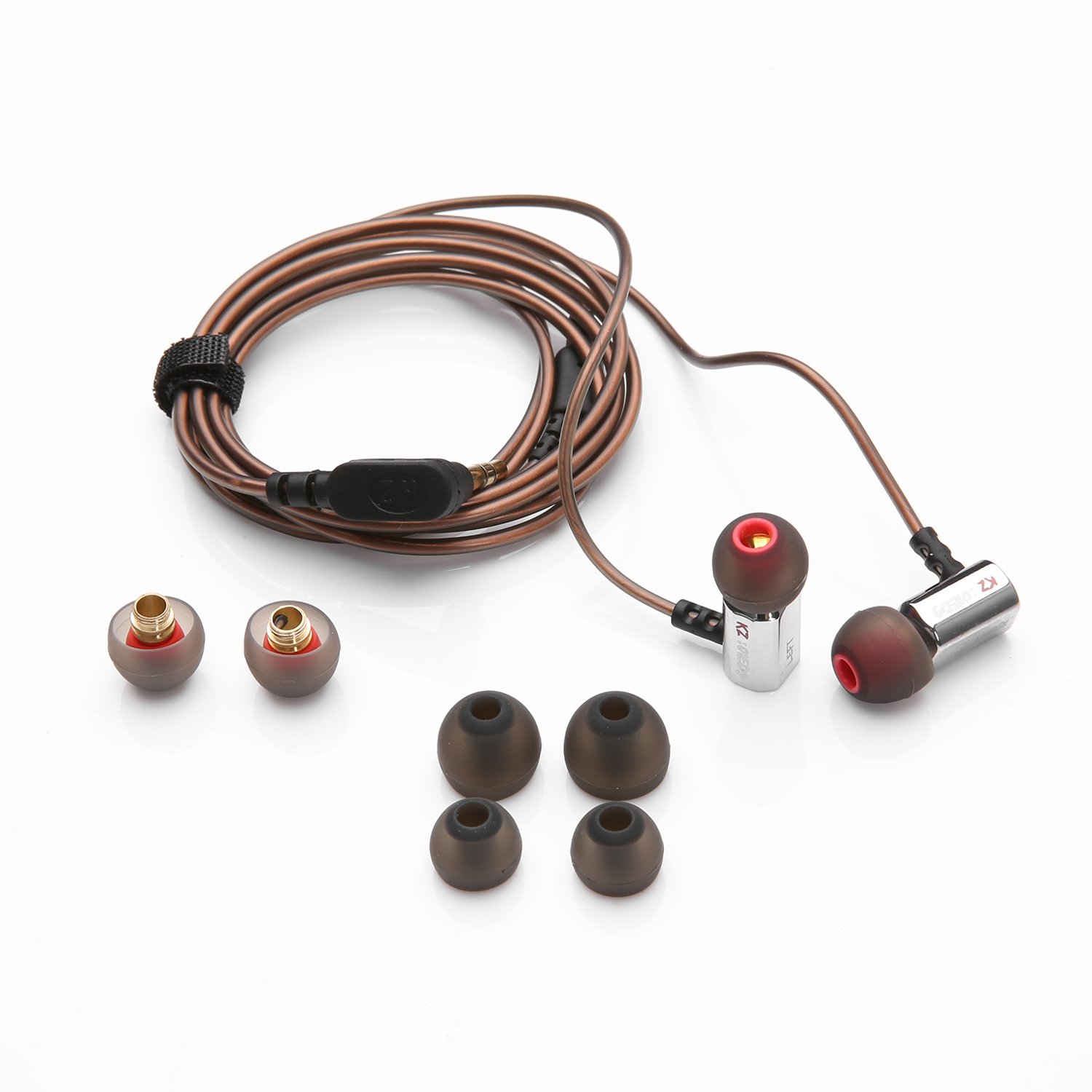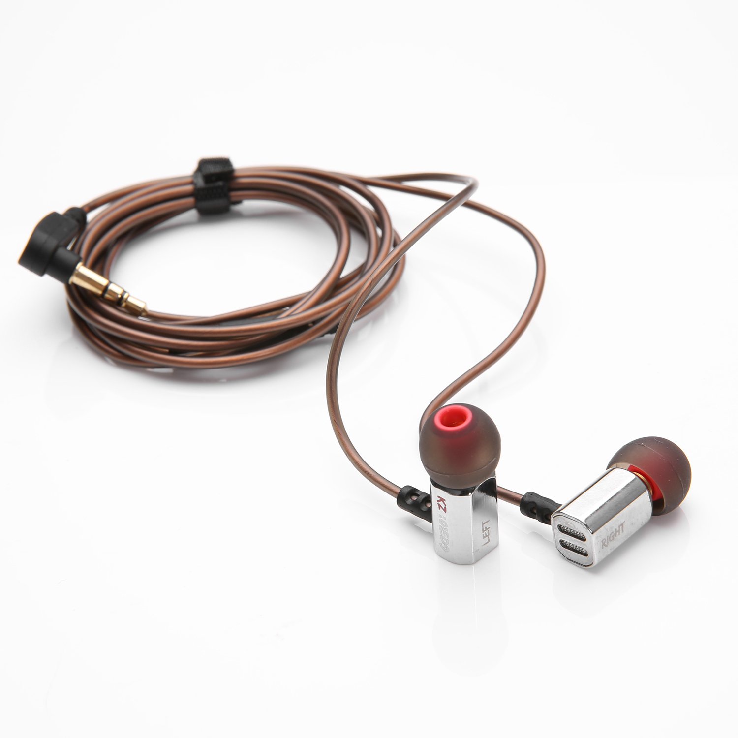 The cable is brown and hard to get tangled and has a stiffness.
