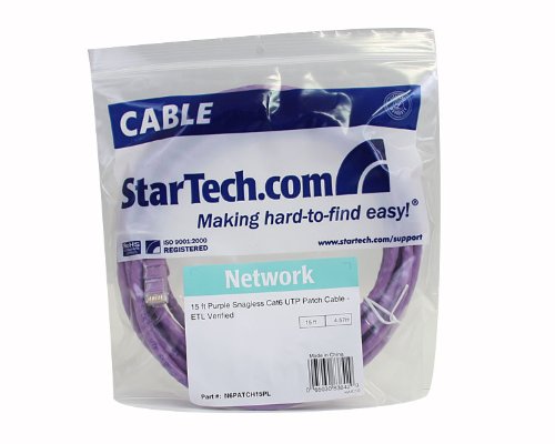 StarTech.com Cat6 Ethernet Cable - 15 ft - Purple - Patch Cable - Snagless Cat5 Cable - Network Cable - Ethernet Cord - Cat 6 Cable - 15ft