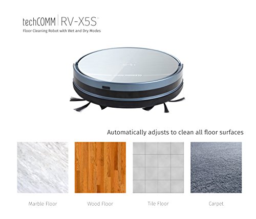 TechComm RV-X5S Floor Cleaning Robot with Wet and Dry Cleaning Modes, App Control, HEPA Filter, Remote Control and Double Central Brush