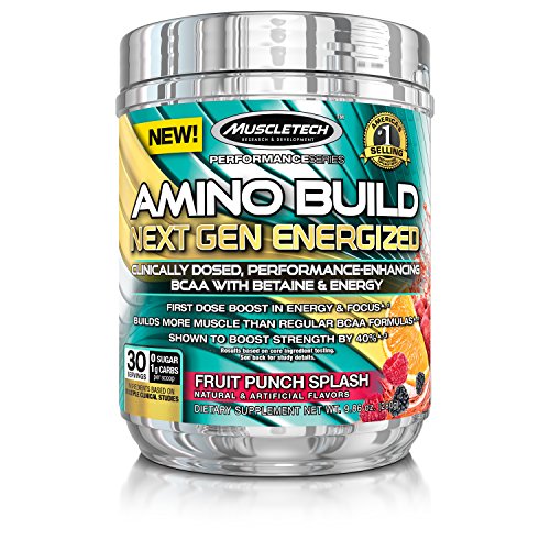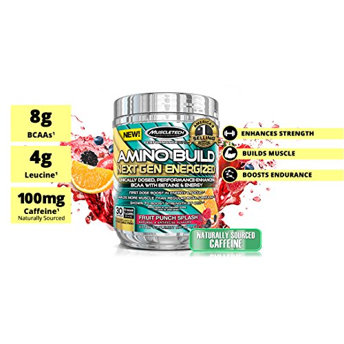 MuscleTech Amino Build Next Gen Energized, Best BCAA Amino Acids Formula with Energy, Fruit Punch, 9.86 oz. (280g)