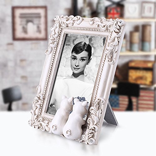 -. Title : Vintage Resin Picture Frame 3.5x5 Inch White