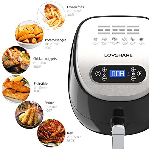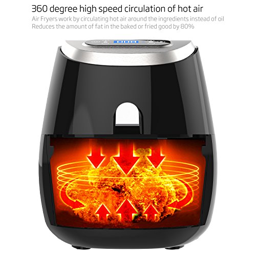 Air Fryer with Little to No Oil:healthier alternative to enjoying fried food.360 degree high speed circulation of hot air,Reduces the amount of fat in the baked or fried good by 80%,perfect for frying, baking, grilling and roasting with little to no oil
