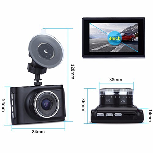 【Recording】Equipped with Full HD 1080P at smooth 30 FPS, built in H.264 defenition video processor + low illumination image Sensor + F2.0 large aperture 6G lens. With 3 inch LCD screen, the car recorder will have wide angle view to display or playback with clear picture on this car camera.