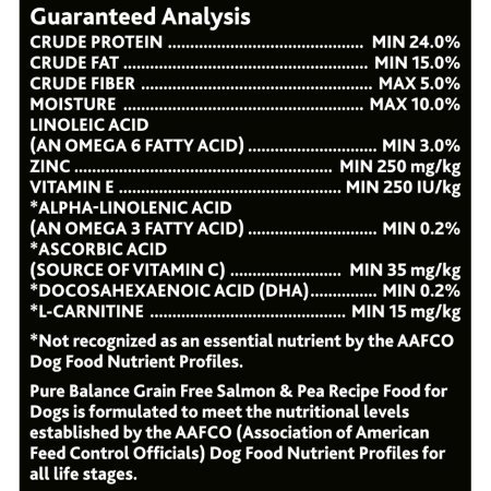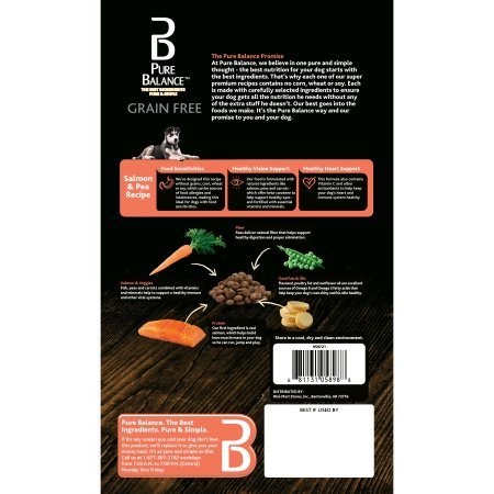 -. Binding : Misc. -. Brand : Pure Balance -. Label : Pure Balance -. Manufacturer : Pure Balance -. PackageQuantity : 1 -. ProductGroup : Pet Products -. ProductTypeName : PET_SUPPLIES -. Publisher : Pure Balance -. Studio : Pure Balance -. Title : Pure Balance 24 Pounds Grain Free Formula Natural Salmon & Pea Dry Dog Food