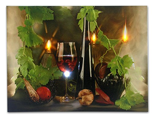 This gallery-wrapped canvas print is sure enhance any home's decor. LED Lights that shine are hidden inside to create the beautiful illusion of reflection on the wine glass and flickering lighted candle. Hangs on the wall. Requires 2 AA batteries, not included. Measures 12" x 16". To see this (or similar) amazing product in action, please copy this into your browser: youtube.com/watch?v=hF6MwTIyw9Q&feature=player_embeddedFeature