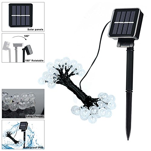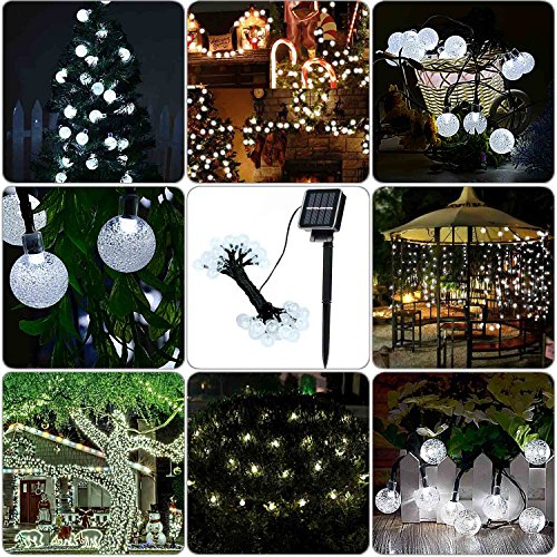 Solar Patio String Lights, ACEHOME LED Solar Christmas lights, 20ft(6m) 30 LED, crystal Ball Ambiance Lighting for Outdoor, Garden, Home, Wedding, Christmas Party, Waterproof (White)
