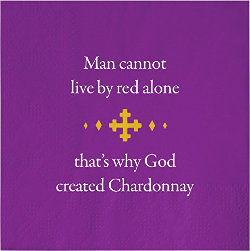 - On front: Man cannot live By Red Alone, that's why God created chardonnay; purple color