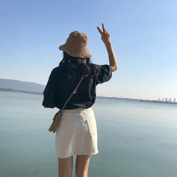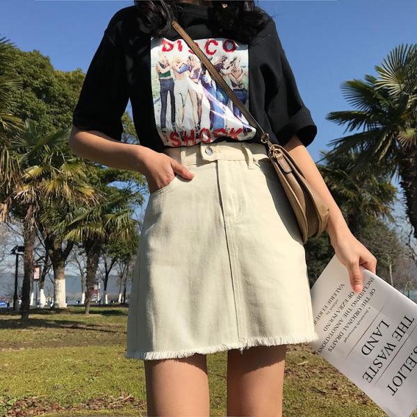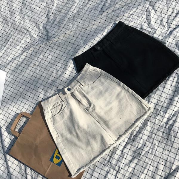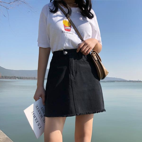 切りっぱなしデザインがかわいいデニムミニスカート。