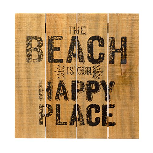 Prinz 12 X 12 Inch Natural 'Beach.Happy Place' Natural Wood Plaque
