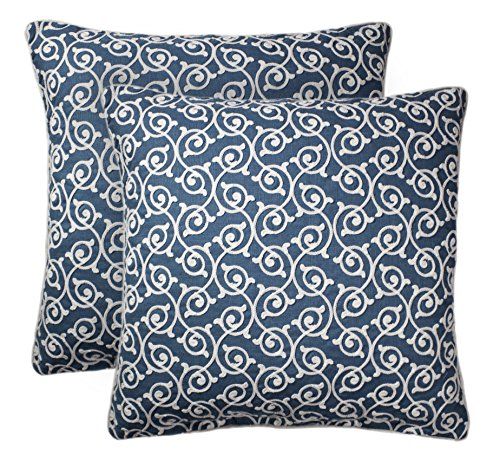 Balmont Collection Nastya Ebroidered Accent Pillow (Set of 2), 20" x 20", Baltic Blue