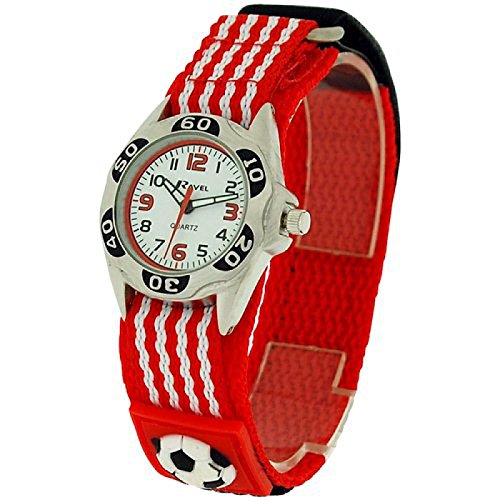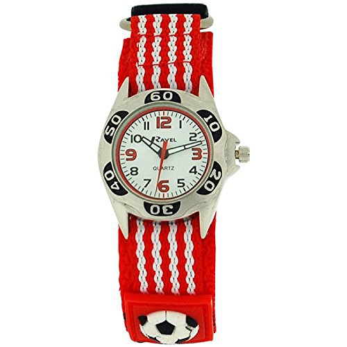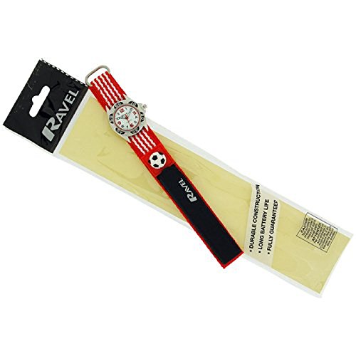 -. Title : Ravel - Kids Red And White Football Velcro Watch R1507.17